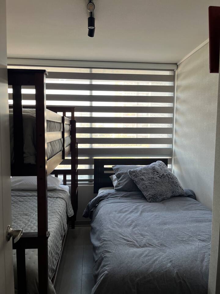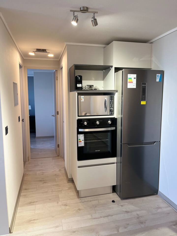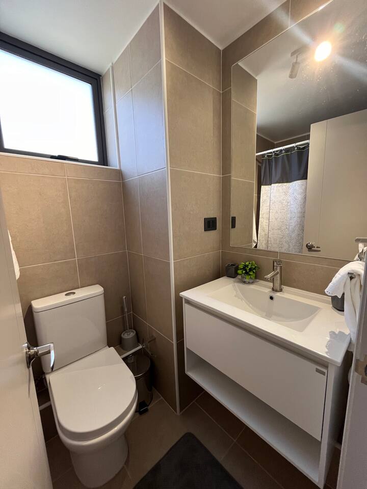 🛏️ Departamento nuevo de 63 m² + balcón de 6 m², con increíble vista despejada a la cordillera de Los Andes. Ubicado en el piso 5, ideal para familias o amigos, equipado para hasta 5 personas. 🛋️ Interior cómodo y moderno: Estilo minimalista contemporáneo con detalles de calidad. Living con sofá VIMLE de 3 cuerpos y comedor para 6 personas. Cocina equipada con isla central, encimera eléctrica de 3 platos, horno empotrado, microondas y refrigerador de 322 litros. Ventanas termopanel termoacústicas para mayor confort. 🛏️ Distribución de camas: Dormitorio principal en suite con cama king Rosen Tempo (premium), amplio walk-in closet y TV de 55” con cable (Paramount+, Disney+, Netflix (puedes iniciar tu sesión), Max, etc). Segundo dormitorio con cama de 1,5 plazas y camarote con dos camas de 1 plaza. Incluye Smart TV y dos clósets. 🛁 2 baños completos, cada uno con tina y ducha: uno en suite, ambos con agua caliente por caldera. 🚗 Estacionamiento privado subterráneo (-1). 🧺 Lavandería común (lavadora y secadora con pago, en piso 1) 🌇 Balcón con vista abierta a la cordillera y malla de seguridad. 🛎️ Seguridad 24/7 con conserjería. 📍 Ubicación privilegiada: A solo 4 minutos caminando del Metro Lo Ovalle. A 15 minutos en metro del Palacio de La Moneda. A 24 minutos del aeropuerto. Supermercado justo al frente, y cercano a farmacias, restaurantes y comercios locales. 🧼 Incluye: Ropa de cama (sábanas, cobertores, plumón) y toallas. Cocina completamente equipada. WiFi en todo el departamento y televisión en ambas habitaciones. Queremos que tu estadía sea lo más cómoda y especial posible. Por eso, ponemos a tu disposición una serie de servicios adicionales que puedes solicitar según tus necesidades: 👨🍳 Chef Privado a Domicilio Convierte tu estadía en una experiencia gourmet. Disfruta de un brunch, almuerzo o cena preparados por un chef en el mismo departamento, con ingredientes frescos y presentación de alto nivel. Ideal para ocasiones especiales o simplemente para darte un gusto. Reserva con anticipación para coordinar menú y horarios. ⸻ 👶 Servicio de Babysitter ¿Te gustaría disfrutar de la ciudad con tranquilidad? Contamos con babysitters confiables y con experiencia, para cuidar a tus hijos mientras tú te relajas. Disponible por hora, medio día o jornada completa. Sujeto a coordinación previa. Consulta tarifas y disponibilidad. ⸻ 💆 Masajes en el Departamento Relájate sin salir. Maribel te ayuda a aliviar tensiones y contracturas con masajes personalizados, acompañados de música suave y ambiente relajante. ⸻ 💅 Manicure y Cuidado de Uñas Ignacia te ofrece un servicio profesional en el departamento: esmaltado permanente, diseño personalizado o tratamientos soft gel, todo adaptado a tu estilo. ⸻ 🚖 Traslado desde y hacia el Aeropuerto ¿Prefieres evitar complicaciones? Coordinamos tu transporte desde o hacia el aeropuerto, para que viajes cómodo y a tiempo. ⸻ 🍷 Tours Personalizados ¿Te gustaría conocer la nieve, los viñedos o el centro histórico de Santiago? Coordinamos tours a medida con una agencia confiable para que vivas una experiencia inolvidable. ⸻ 🧼 Limpieza Durante la Estadía ¿Necesitas aseo adicional durante tu visita? Podemos programarlo cuando lo indiques, según tu comodidad.