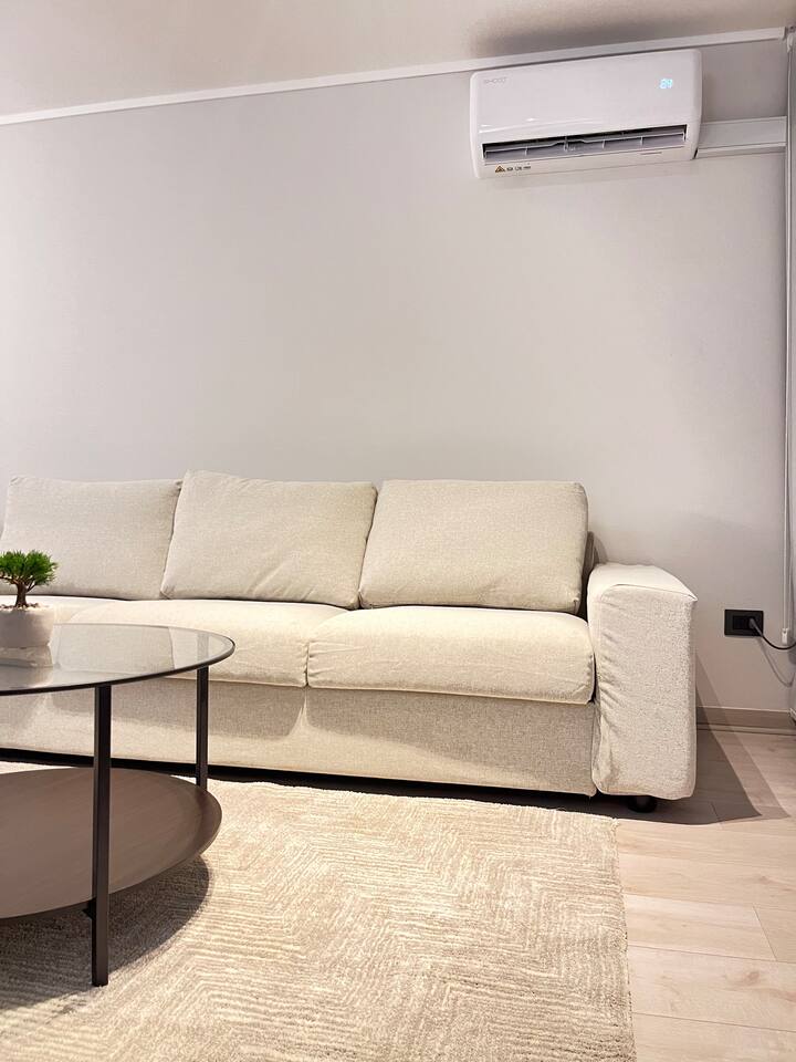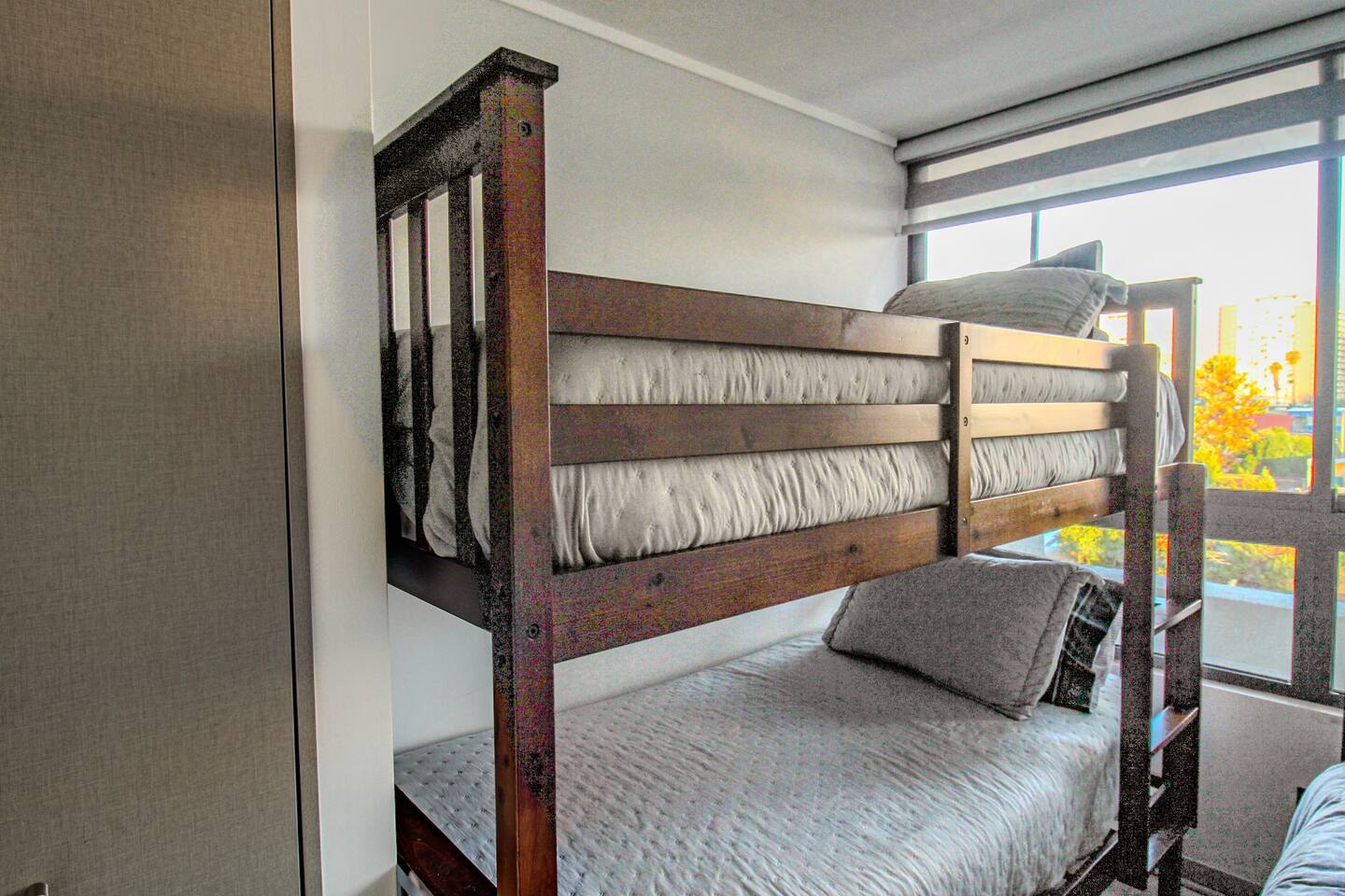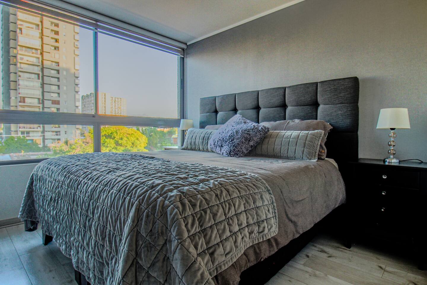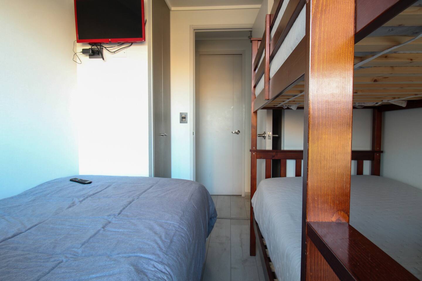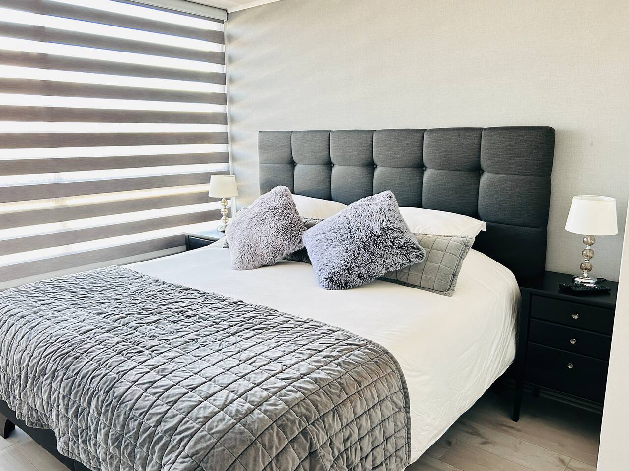 Ven a disfrutar de este moderno y luminoso departamento de 63 m² en La Cisterna, de estilo minimalista con toques nórdicos. Ideal para 5 personas, con cocina completamente equipada, comedor amplio, aire acondicionado y vista a la cordillera 🏔️ desde el balcón con malla de seguridad. Dormitorio principal con cama king y segundo dormitorio con litera más cama. Edificio seguro con conserjería 24/7 y excelente conexión al metro, centro y aeropuerto. ¡Comodidad y diseño en un solo lugar!