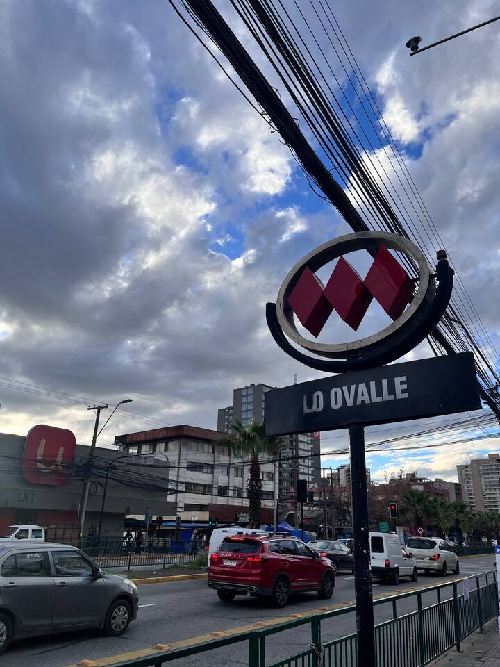 Metro Lo Ovalle a pasos del departamento. El estacionamiento es individual y está en el subterráneo. Puedes ir a cualquier lugar de Santiago ya sea en vehículo particular, transporte público o metro. Frente al departamento hay un supermercado, y cerca hay restaurantes y un mall.