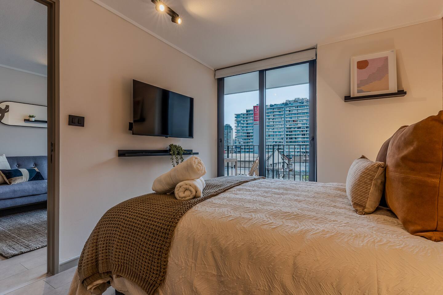 📍 Ubicación estratégica: ¡será muy fácil planear tu visita!. Características principales: 🏠 Full equipado para 1 a 3 huéspedes 🚇 A pasos del Metro Irarrázaval 🔑 Auto check-in 🌬️ Aire acondicionado y calefacción 🛏️ Cama queen con colchón premium 🛋️ Sofá cama 🧴 Toallas y ropa de cama incluidas 💪 Gimnasio de 3 pisos 🏊 Piscina disponible en temporada de verano 📺 Smart TV en dormitorio 🚗 Estacionamiento incluido.