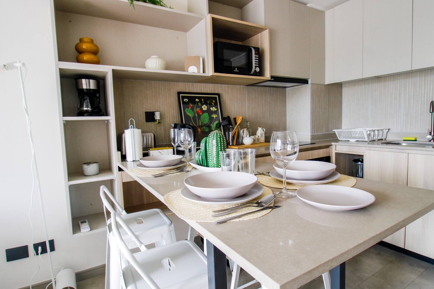 El apartamento es perfecto, tiene todo loquera se necesita, es igual que las fotos, la piscina es muy linda tiene una vista perfecta, todo fue muy agradable, llegar es super fácil tiene 2 estaciones de metro cerca y la ubicación es muy tranquila .