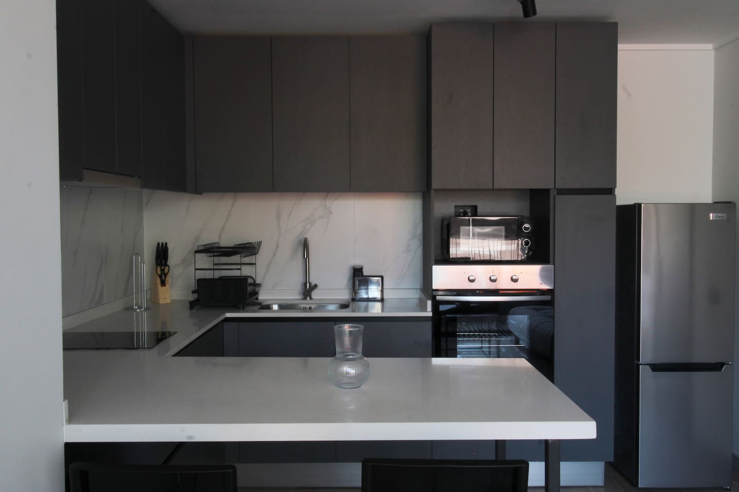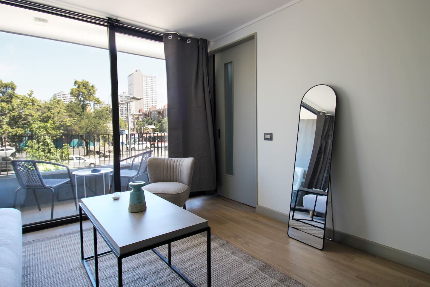 👮 auto check-in 24 horas 🚇 A pasos del metro Ecuador y San Alberto Hurtado en Alameda. 🧺Toallas y ropa de cama 🛋️ Cama doble y sofá cama ❄️ Aire acondicionado y calefacción split inverter 12.000 BTU 🧑🍳Cocina full equipada. Encimera eléctrica 🪟 ventanas termo panel PVC 🔑Acceso cerradura digital 🛜 Internet de fibra óptica con wifi rápido 🪟Balcón 🛒 a pasos de supermercado, Teletón, Red Salud, mutual, ACHS. Estacionamiento de pago por CLP5.000 por noche