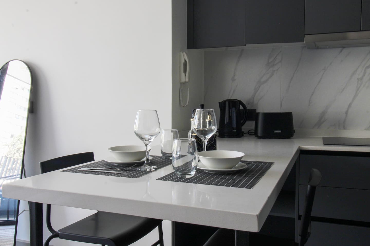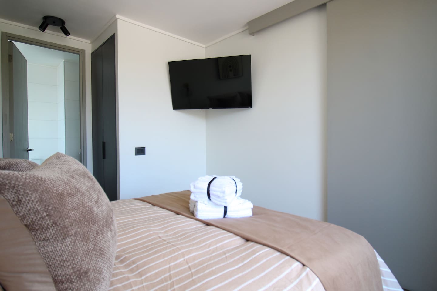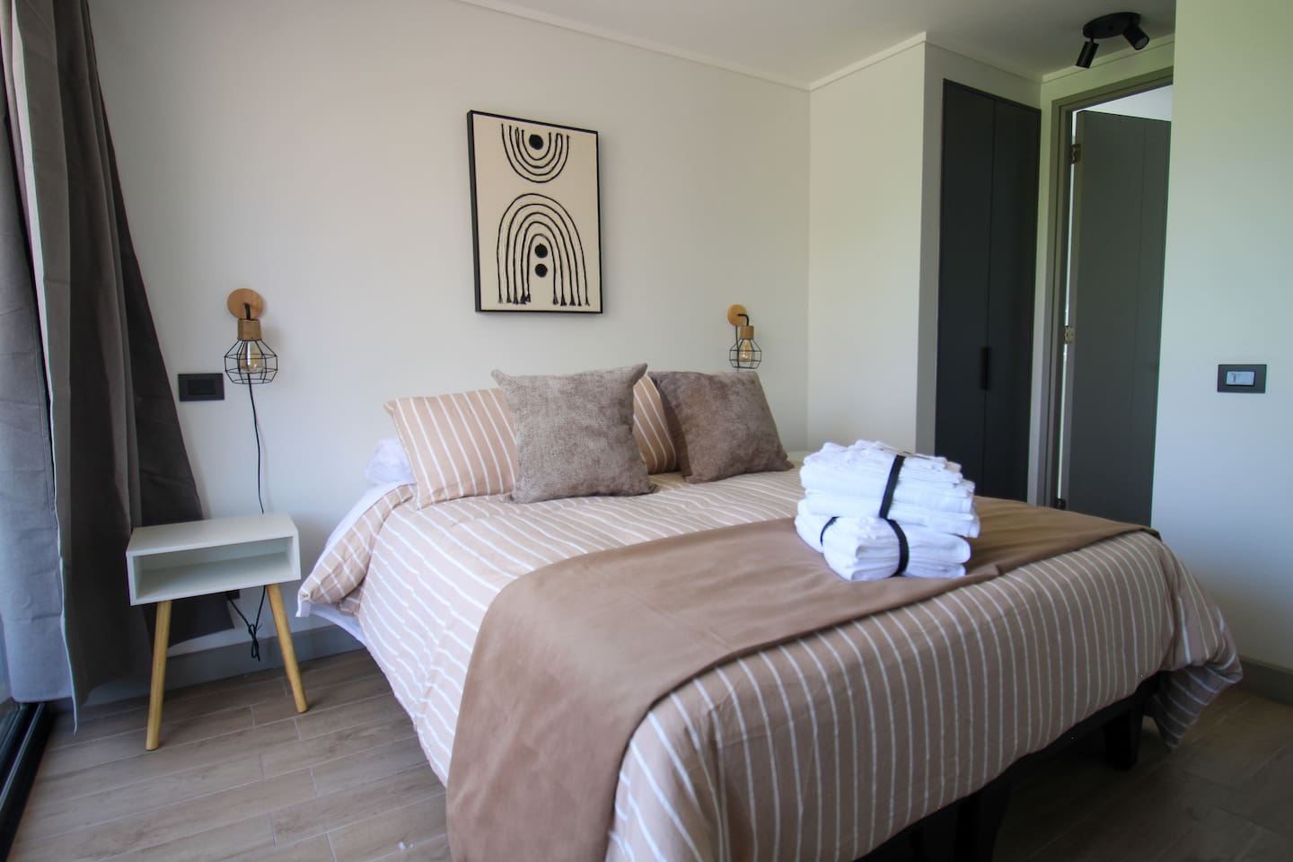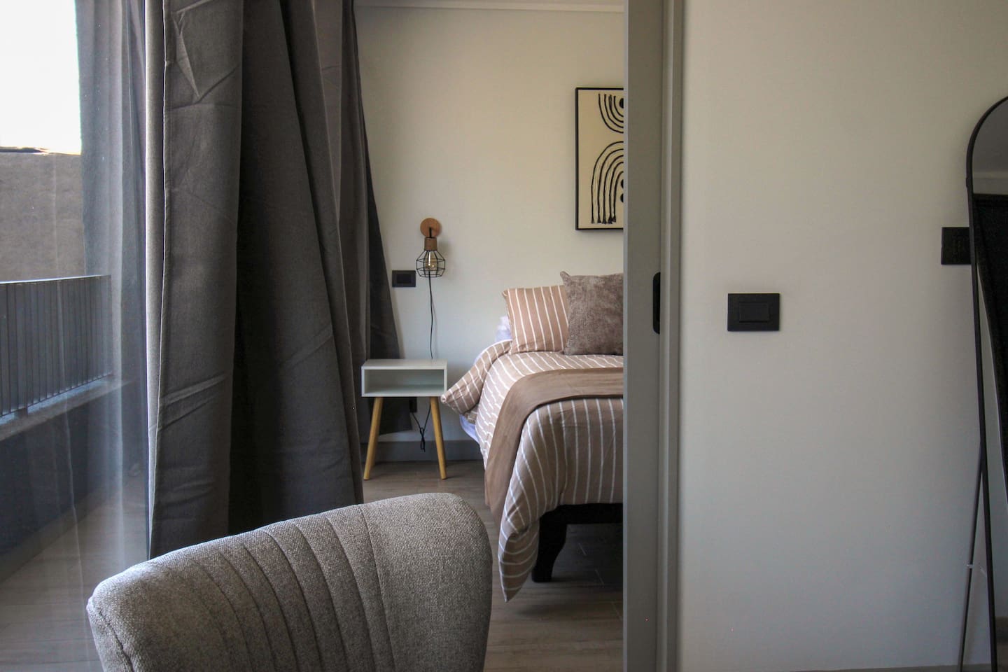🍽️ Restaurantes destacados Parrilladas Argentinas- a 5 minutos caminando Barrio Lastarria -a 15 a 20 minutos en auto. Zona gastronómica y bohemia principal de Santiago. Barrio Italia -a 20a 25 minutos en auto. Zona gastronómica y bohemia principal de Santiago. 🛒 Supermercados y tiendas - Supermercado Lider: a 5 minutos caminando hacia el oriente. - Mall plaza Alameda: a 15 minutos caminando - Barrio Meigg: a 10 minutos en auto o a 3 estaciones en metro (Metro Estación Central Linea 1). 🏥 Clínicas y hospitales cercanos Teletón: 5 minutos caminando. Centro Alameda Achs Salud: 3 Minutos caminando. Mutual de seguridad: 10 minutos caminando. Red Salud Alameda: 10 Minutos caminando. Hospital del profesor: 10 minutos caminando. Estación de metro Ecuador y una ubicación estratégica entre viñedos (Casablanca), centro de Santiago y la cordillera de Los Andes El departamento está a 4,6 km de Movistar Arena y a 5,4 km de Museo de Arte Precolombino. El Aeropuerto Internacional de Santiago - Comodoro Arturo Merino Benítez está a 16 km de distancia. El alojamiento ofrece un servicio de conexión con el aeropuerto con cargo. ¿Tours o traslados? Podemos ayudarte a coordinar servicios de transporte o tours que pasen a buscarte directamente al departamento. Contáctanos con anticipación y te compartiremos opciones disponibles.
